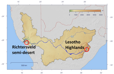 South Africa’s 2,798 km coastline hosted key developments in modern human evolution. During times of resource stress, the coasts acted as refugia to earlier members of our species by providing stable supplies. But the subcontinent has another major aquatic feature that, despite stretching 2200 km across virtually the entire country, has received far less attention: the Orange-Senqu River. Rising from the subcontinent’s highest peaks and coursing through some of its most arid regions, the Orange-Senqu would have oscillated with Late Pleistocene climate changes between a useful corridor and a vital lifeline. Our project targets opposite ends of this inland fluvial artery: highland Lesotho where its headwaters rise, and the Namaqualand desert where it empties into the Atlantic. In this paper, we employ radiometric, geoarchaeological and paleoenvironmental data to generate a hypothesis of how the Orange-Senqu River variably influenced Late Pleistocene population dynamics.